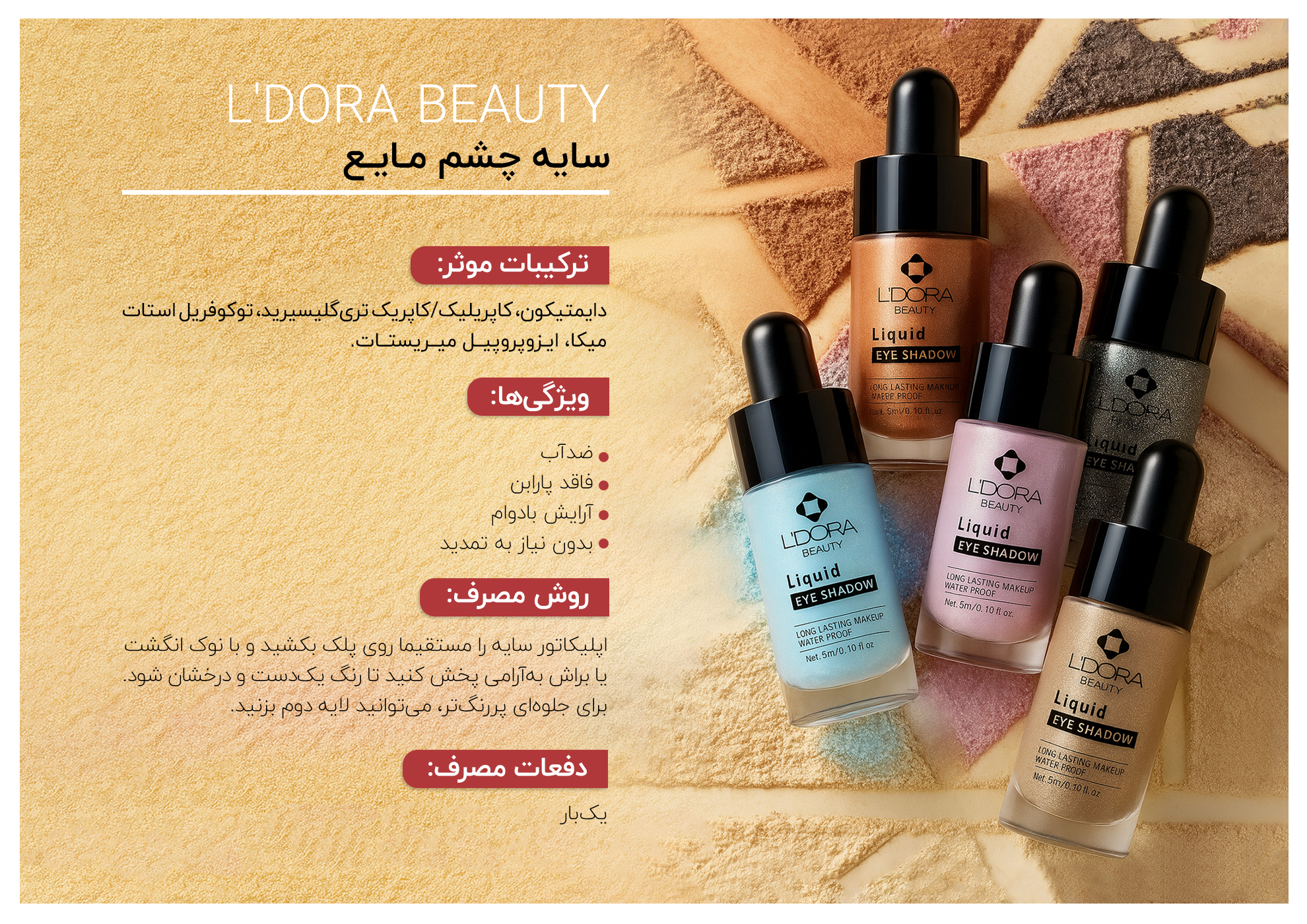 این سایه چشم مایع با بافتی سبک و روان، بهراحتی روی پلک مینشیند و جلوهای یکدست و شفاف ایجاد میکند. رنگهای غنی و درخشش ملایم آن، چشمها را برجسته و جذابتر نشان میدهند، در حالیکه فرمول ماندگار و بدون ریزش، زیبایی را ساعتها حفظ میکند. ترکیبی از راحتی، ظرافت و درخشش مدرن که برای آرایشی شیک و آسان طراحی شده است.